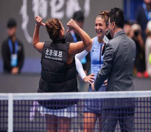 意大利球员保利尼被中国球迷亲切地称为「保总」,恰好与中网现场的安保人员的制服「重名」,这一度在网上掀起了玩梗热潮,在中网女双决赛中,保利尼身着「北京保总」字样的安保同款马甲入场,视频传播到网上迅速登上热搜,夺冠后保利尼身着制服与中网安保团队大合影,网友直呼:「太会了」。