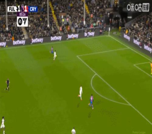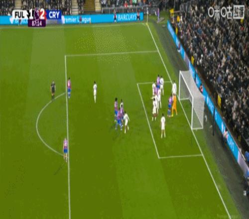 第87分钟,皮诺开出角球,格伊头球破门,水晶宫2-1富勒姆