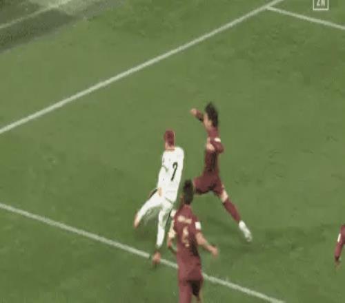 第76分钟,韦世豪带球高速突破后,将球横传,井手口阳介伸出手臂,皮球刚好打中!点球。