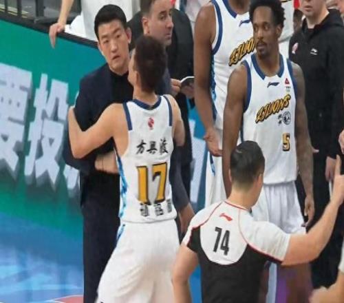 最后五分钟,布朗三分没有,周琦篮下不进,孙铭徽罚篮,赵睿得分,孙铭徽快速回应,张才仁失误,孙铭徽上空篮,杰曼硬解。布朗后撤步三分,周琦二次得分,布朗压哨三分再进,杰曼和赵睿连续打铁,关键球不如布朗。