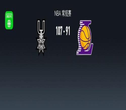 北京时间1月8日NBA 常规赛,圣安东尼奥马刺对阵洛杉矶湖人。本场双方均背靠背比赛,湖人詹姆斯缺阵。上半场双方展开防守拉锯战,马刺保持微弱领先,半场马刺48-43湖人,第三节马刺将分差拉大至两位数,末节湖人无力反扑,最终马刺107-91湖人。