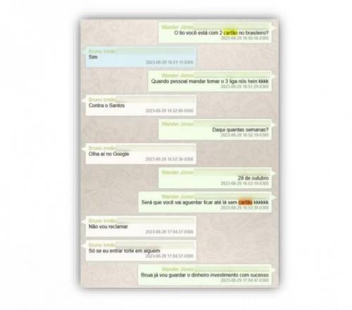 巴西媒体从警方获得了球员涉赌的聊天记录,这些人于去年11月被警方扣押并没收了手机。记录显示,布鲁诺-恩里克涉嫌在2023年巴西杯弗拉门戈对桑托斯的比赛中故意吃黄牌,使相关投注者获益。